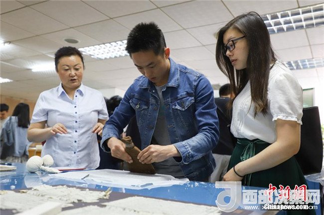 一位同學在修復師的指導下體驗。中新社發(fā)瞿宏倫攝