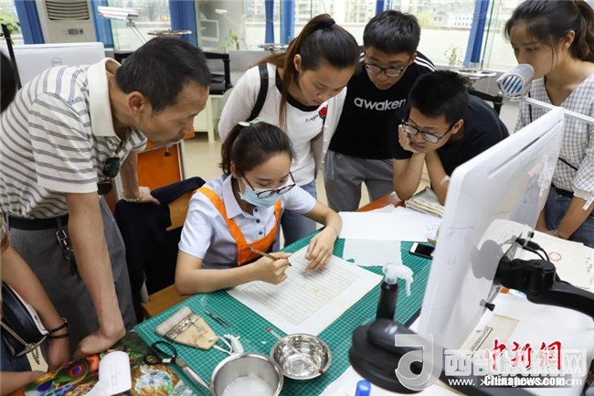 古籍修復技藝吸引民眾圍觀。中新社發(fā)瞿宏倫攝