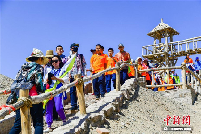 敦煌陽關(guān)景區(qū)新開辟的陽關(guān)棧道旅游項目,端午節(jié)期間吸引眾多游人體驗。王斌銀 攝