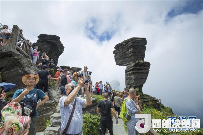 游客在貴州銅仁梵凈山游玩(2017年8月7日攝)。新華社發(fā)(姚磊 攝)