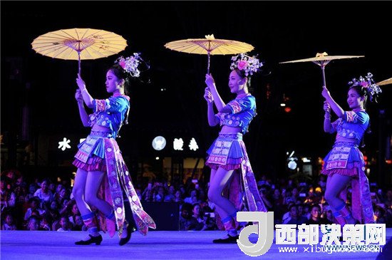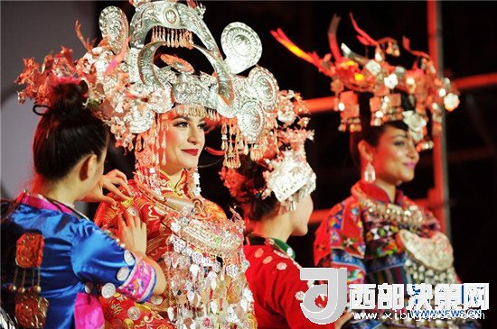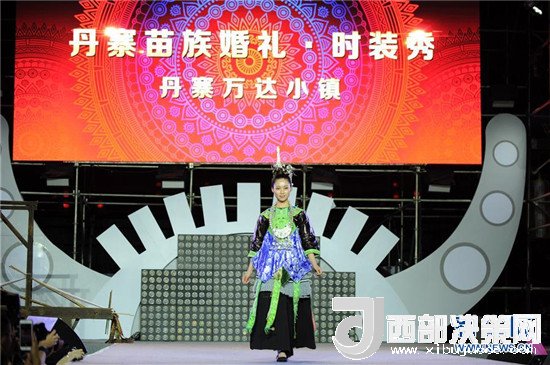 7月2日晚,在貴州省黔東南苗族侗族自治州丹寨縣,一場以苗族婚禮、苗族服飾為主的服飾秀在萬達(dá)小鎮(zhèn)舉行。中國以及來自喀麥隆、巴西、墨西哥、荷蘭等國的模特,集中展示民族服飾元素設(shè)計作品。新華社發(fā)(楊文斌 攝)