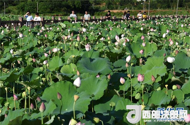 7月9日,游客在南豐縣太和鎮(zhèn)丹陽村蓮田觀看蓮花。