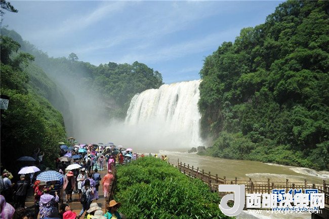 游客在安順市黃果樹瀑布景區(qū)游覽(6月5日攝)。