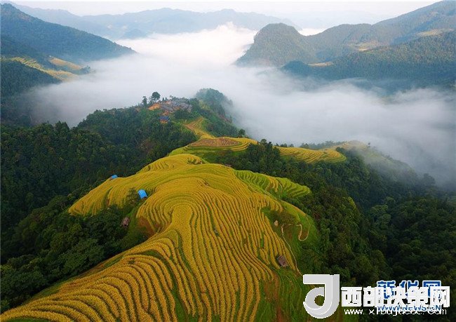 黔東南苗族侗族自治州榕江縣郊外的梯田風(fēng)光(2017年9月18日無人機(jī)拍攝)。