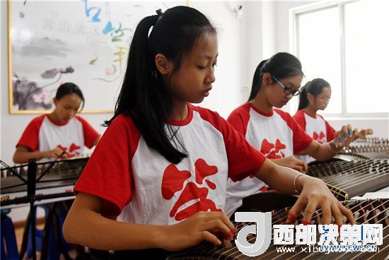7月12日,孩子們在廣西欽州市一家古箏培訓(xùn)中心練習(xí)。