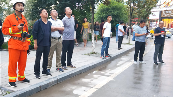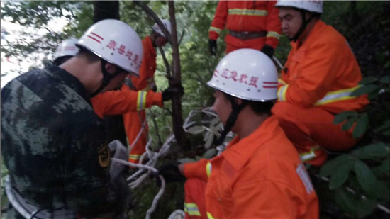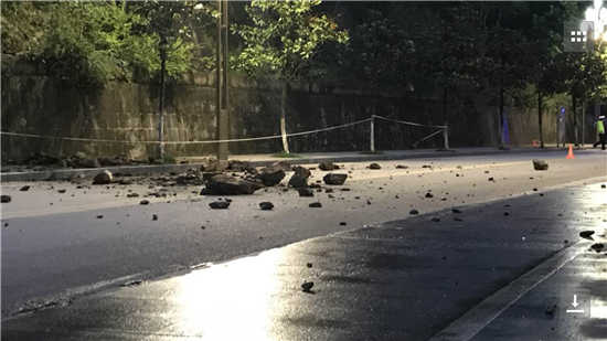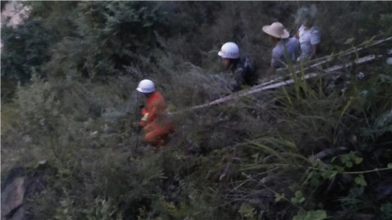 接到報(bào)警后,大隊(duì)及專職隊(duì)迅速出動(dòng)兩輛消防車(chē)和10名官兵趕赴現(xiàn)場(chǎng)進(jìn)行處置,到達(dá)現(xiàn)場(chǎng)后,指揮員迅速帶領(lǐng)4名戰(zhàn)斗員立即對(duì)險(xiǎn)情進(jìn)行偵查。通過(guò)現(xiàn)場(chǎng)偵查,發(fā)現(xiàn)在距離路面高約50米的山梁上,幾個(gè)石塊直徑約1米大小,由于連續(xù)幾日暴雨,石塊下土層已經(jīng)流失,導(dǎo)致石塊部分懸空,隨時(shí)都有掉落的危險(xiǎn)。此時(shí)已近夜晚,模糊不清的環(huán)境無(wú)形中增加現(xiàn)場(chǎng)處置的難度。指揮員下令,分兩組進(jìn)行處置,一組由5名戰(zhàn)斗員跟隨一名熟悉該山道路的群眾一起上山,處置"懸石”險(xiǎn)情,一組與交警部門(mén)拉起警戒線隔離過(guò)往車(chē)輛和行人。由于“懸石”處無(wú)路可通,戰(zhàn)斗員在上到山梁后,系上安全繩下降到懸石旁利用事先準(zhǔn)備好的鋼釬對(duì)石塊進(jìn)行起拗,在經(jīng)過(guò)兩個(gè)多小時(shí)的作業(yè)后,全部懸石終于掉落路面,使隱患徹底消除。