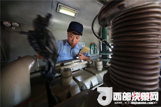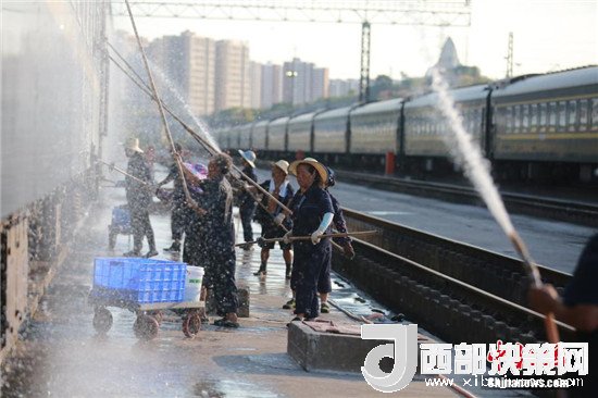 近日,重慶市發(fā)布“高溫紅色預(yù)警”信號,最高氣溫達(dá)到40℃以上。2018年暑運開始以來,有“火車醫(yī)院”之稱的中國鐵路成都局集團(tuán)有限公司重慶車輛段重慶北運用車間,500余名工作人員堅守崗位,每天檢修、清洗370余節(jié)列車車廂,全力以赴確保旅客列車安全舒適。蘇志剛 攝