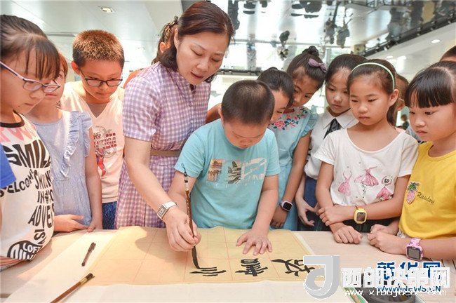 當(dāng)日,在福建省少年兒童圖書館,由省級(jí)書法名師領(lǐng)銜的公益書法夏令營正式開營。80名有一定書法基礎(chǔ)的小學(xué)生將在各校書法校本教學(xué)的基礎(chǔ)上,免費(fèi)接受名師書法指導(dǎo)。新華社記者 宋為偉 攝