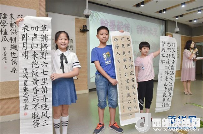 7月24日,在福建省少年兒童圖書館,參加省級(jí)書法名師公益夏令營的孩子們在分享書法創(chuàng)作體會(huì)。
