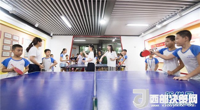 7月26日,在柯橋區(qū)安昌街道社區(qū)文化禮堂,“小候鳥(niǎo)”在打乒乓球。