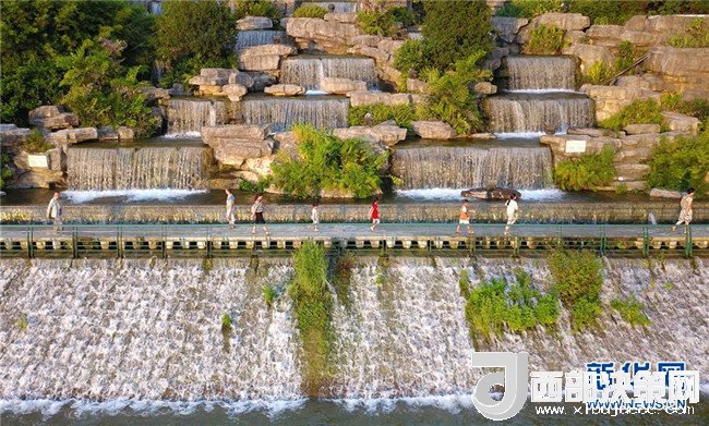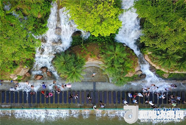 炎炎夏日,柳州市區(qū)柳江沿岸的人工瀑布群每天定時開放,為市民送去清涼。新華社發(fā)(黎寒池 攝)
