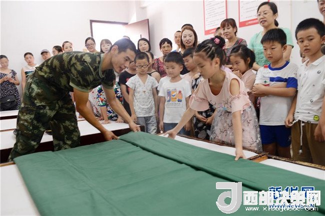 8月2日,湖北省宜昌市秭歸縣實驗小學(xué)的學(xué)生和家長在縣消防中隊體驗整理內(nèi)務(wù)。 新華社發(fā)(王輝富 攝)