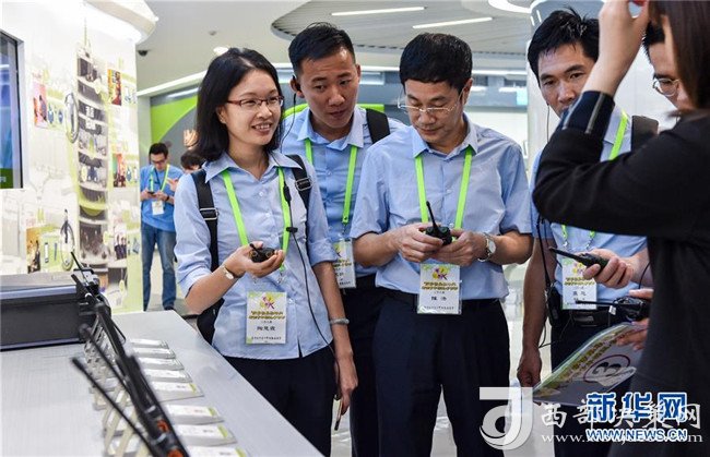 參加“國(guó)家發(fā)展戰(zhàn)略與香港青年機(jī)遇”參訪團(tuán)的香港青年代表在深圳海能達(dá)通信股份有限公司總部展廳參觀(2018年6月26日攝)。新華社記者毛思倩攝