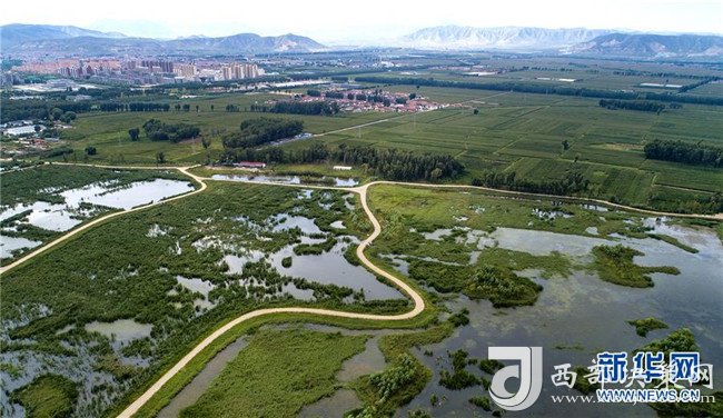 8月22日無人機拍攝的廣靈縣壺流河濕地。新華社記者 陶明 攝