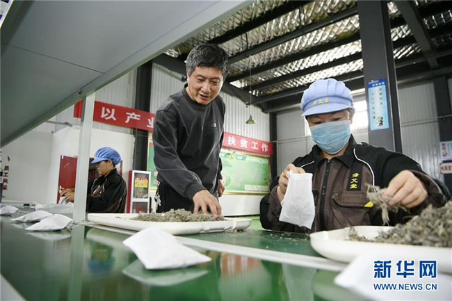 林玉清在寧夏固原市西吉縣寧夏澤艾堂生物科技有限公司查看艾草產(chǎn)品(8月30日攝)。來自福建莆田的林玉清2017年3月在西吉縣成立寧夏澤艾堂生物科技有限公司,依托西吉縣優(yōu)質(zhì)的艾草種植條件,采用“公司+合作社+農(nóng)戶”的訂單農(nóng)業(yè)合作模式,與吉強(qiáng)、新營等鄉(xiāng)鎮(zhèn)種植專業(yè)合作社合作建成艾草種植基地11個、推廣種植艾草6000畝,為當(dāng)?shù)厝罕娒撠氈赂讳伨托侣纷印P氯A社記者郭緒雷攝