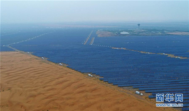 地處寧夏中衛(wèi)市騰格里沙漠邊緣的中衛(wèi)市沙漠光伏產(chǎn)業(yè)園,依托沙漠日照充足、地域廣闊的優(yōu)勢(shì),引進(jìn)太陽能光伏組件制造、設(shè)備生產(chǎn)、光伏電站等企業(yè),形成了“硅料+硅片+光伏組件+光伏發(fā)電”的全產(chǎn)業(yè)鏈發(fā)展規(guī)模,打造沙漠里的太陽能“硅谷”。記者王鵬攝