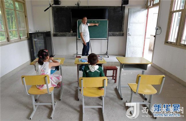 高自仁給一年級的孩子們上語文課(9月3日攝)。新華社記者 彭昭之攝