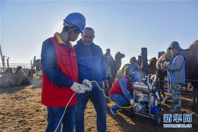 合作社工作人員在駝場里忙碌(9月14日攝)。 新華社記者 趙戈 攝