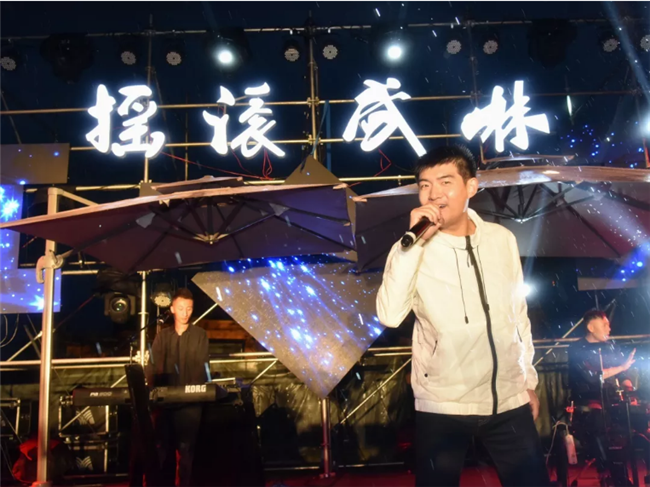 星空音樂趴于當(dāng)晚18時30分正式開始,在層巒聳翠中,浩瀚星辰下,由原創(chuàng)搖滾實效樂隊帶來的動感音樂瞬間點燃全場,華旅集團營銷中心各位美女為大家?guī)韯痈鞋F(xiàn)代舞,馬超武術(shù)表演隊伍更是展現(xiàn)了劍、九節(jié)鞭、棍、拳的華夏男兒力量之美,DJ、MC電音律動,現(xiàn)場聽眾更是融入其中,服裝上的熒光粉在夜空中也化作點點星光,與天、地、舞臺融為一體,撩人電音牽手活力運動,燃爆初秋的第一把火!這是一個聞所未聞的華山“武林”。