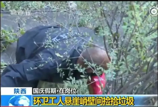 假期期間,隨著游客增多,景區(qū)內(nèi)的垃圾也隨之增多。為了清理游客隨手丟棄在懸崖峭壁間的塑料袋、礦泉水瓶等垃圾,他們需要身系保險(xiǎn)繩,冒著危險(xiǎn)工作。