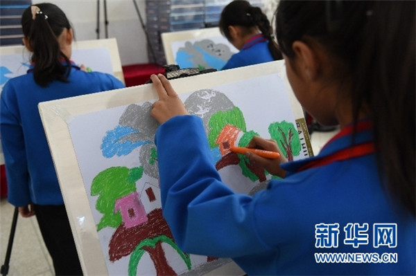 蘭渭希望小學(xué)的孩子們正在用海歸捐贈的畫具繪畫。新華社記者王朋 攝