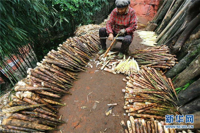 10月14日,在貴州赤水市寶源鄉(xiāng)聯(lián)華村,竹農(nóng)加工剛?cè)さ孽r筍。金秋時(shí)節(jié),貴州省赤水市寶源、兩河口、丙安等鄉(xiāng)鎮(zhèn)種植的5萬(wàn)余畝大竹筍迎來(lái)收獲季。當(dāng)?shù)刂褶r(nóng)加緊采挖竹筍,進(jìn)行加工后外銷。素有“中國(guó)竹子之鄉(xiāng)”的赤水市,現(xiàn)有竹林面積132.8萬(wàn)畝。竹產(chǎn)業(yè)已經(jīng)成為當(dāng)?shù)孛撠氃鍪盏闹饕乐弧?(王長(zhǎng)育 攝)