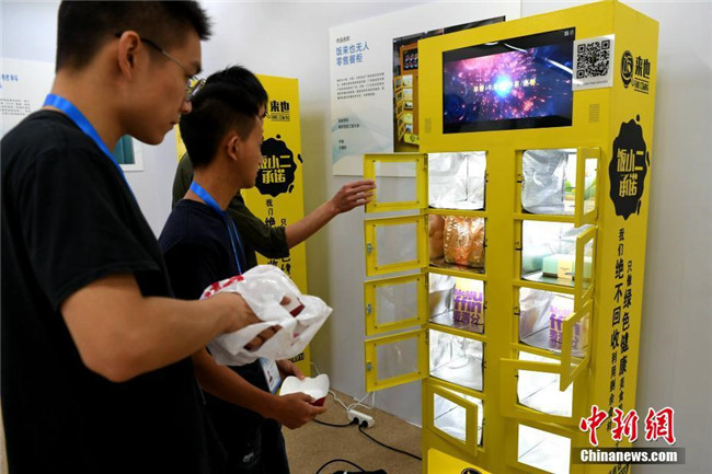 10月13日,第四屆中國“互聯(lián)網(wǎng)+”大學(xué)生創(chuàng)新創(chuàng)業(yè)大賽總決賽在廈門大學(xué)舉行。無人機(jī)、自助售飯機(jī)、人偶互動(dòng)、全息3D智能視頻、機(jī)器人輪椅、3D打印假肢手臂等大學(xué)生研發(fā)設(shè)計(jì)的產(chǎn)品亮相會(huì)場(chǎng),以“90后”為主的創(chuàng)新創(chuàng)業(yè)生力軍已全面發(fā)力,釋放出“青年+創(chuàng)新創(chuàng)業(yè)”的無窮力量。圖為無人售飯機(jī)展示。中新社記者 王東明 攝