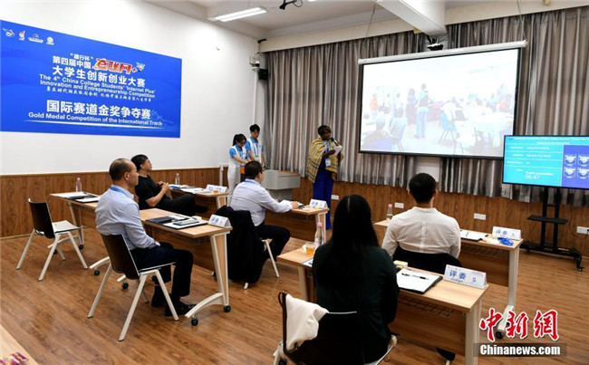 10月13日,第四屆中國“互聯(lián)網(wǎng)+”大學(xué)生創(chuàng)新創(chuàng)業(yè)大賽總決賽在廈門大學(xué)舉行。本屆大賽于今年3月份啟動(dòng),迄今累計(jì)已有近265萬大學(xué)生、63萬個(gè)團(tuán)隊(duì)參賽,涌現(xiàn)出一大批科技含量高、市場(chǎng)潛力大、社會(huì)效益好的高質(zhì)量項(xiàng)目,以“90后”為主的創(chuàng)新創(chuàng)業(yè)生力軍已全面發(fā)力,釋放出“青年+創(chuàng)新創(chuàng)業(yè)”的無窮力量。圖為比賽現(xiàn)場(chǎng)。中新社記者 王東明 攝