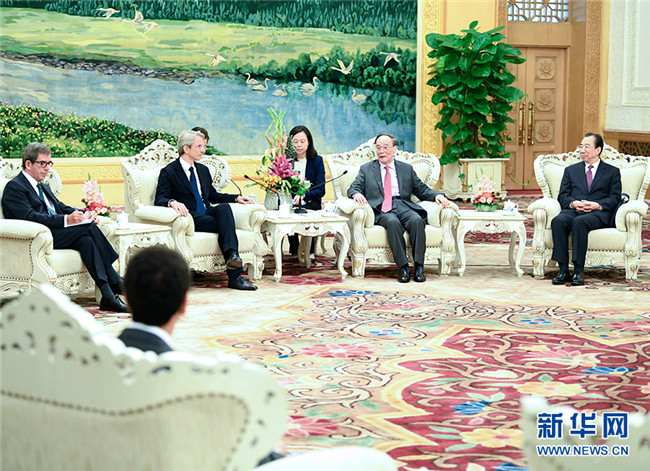 國家副主席王岐山15日在人民大會堂會見出席第六屆中法青年領(lǐng)導(dǎo)者論壇的雙方代表。