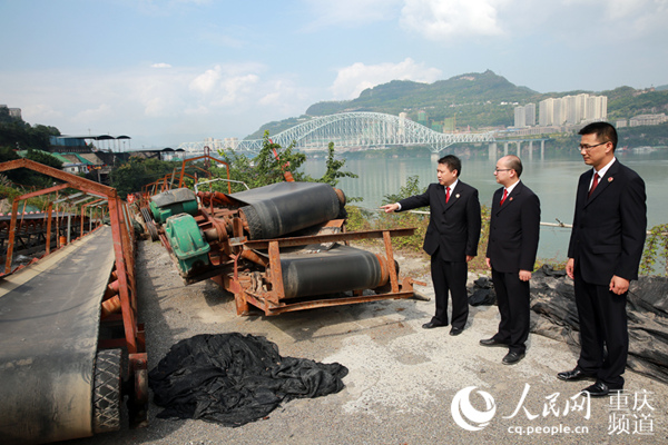 10月17日,重慶市人民檢察院第二分院檢察官復勘非法碼頭整治現(xiàn)場。劉政寧 攝
