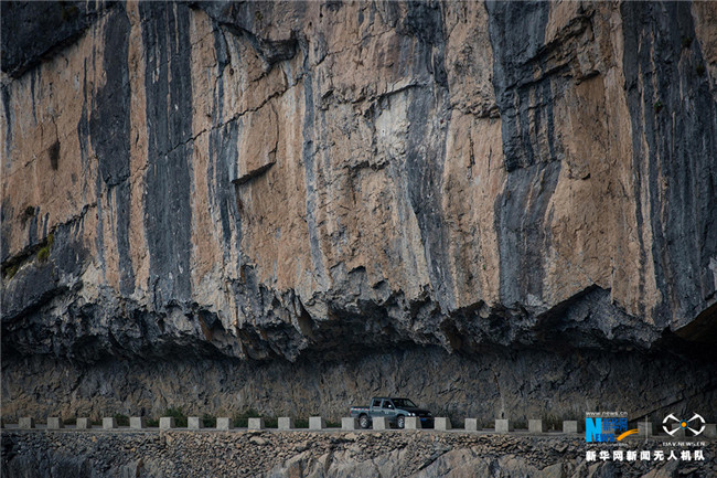 稱其“懸崖天路”,來源于其險(xiǎn)要的地勢——上方是巖石,外側(cè)是懸崖峭壁。由于地處海拔1500米的高山,常有云霧繚繞,驚險(xiǎn)萬分。新華網(wǎng) 李相博 攝