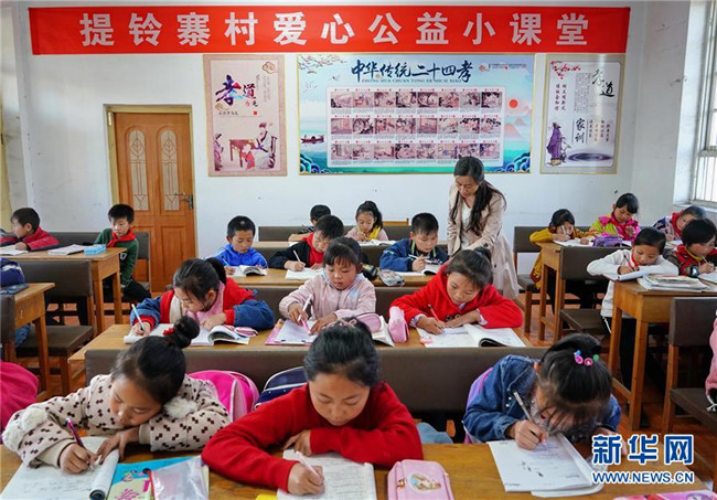 近日,河北省遷安市閆家店鄉(xiāng)提鈴寨村黨支部副書記李飛燕針對該村留守兒童放學后無人看護或者沒有人輔導作業(yè)的情況,在村委會辦起了一個“愛心公益小課堂”,讓孩子們來這里學習,解決了外出務工家長們的后顧之憂。新華社記者 楊世堯 攝
