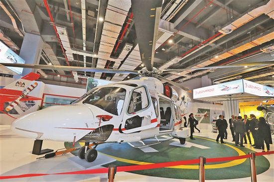AW189型直升機(jī)是此次進(jìn)博會上單體價(jià)值最高的一個(gè)產(chǎn)品,價(jià)值2億元人民幣。本報(bào)記者 周燦 攝