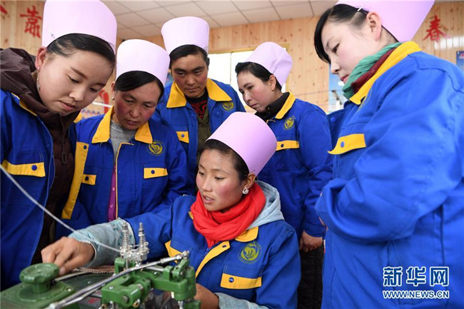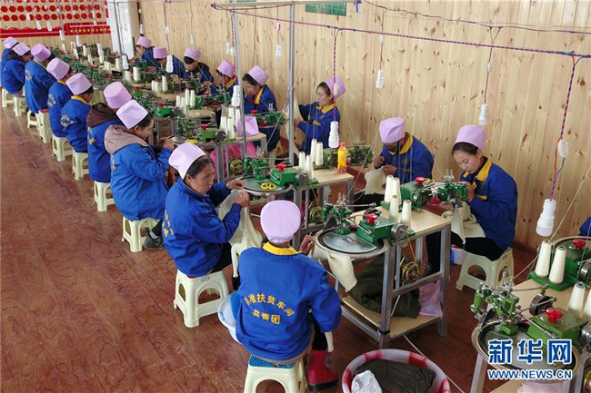 近日,甘肅省臨夏回族自治州東鄉(xiāng)族自治縣大樹鄉(xiāng)“扶貧車間”投入使用,40多名留守婦女在家門口實(shí)現(xiàn)就業(yè)。今年以來,共青團(tuán)臨夏州委積極爭取東西協(xié)作城市廈門市的支持,建立“扶貧車間”,同時組織培訓(xùn)農(nóng)村留守婦女,實(shí)現(xiàn)就地就業(yè)增收。新華社記者 范培珅 攝