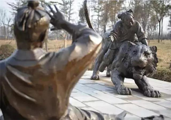 春秋時(shí)期的郯子,父母年老,患眼疾,需飲鹿乳療治。他便披鹿皮進(jìn)入深山,鉆進(jìn)鹿群中,擠取鹿乳,供奉雙親。一次取乳時(shí),看見獵人正要射殺一只麂鹿,郯子急忙掀起鹿皮現(xiàn)身出走,將擠取鹿乳為雙親醫(yī)病的實(shí)情告知獵人,獵人敬他孝順,以鹿乳相贈(zèng),護(hù)送他出山。