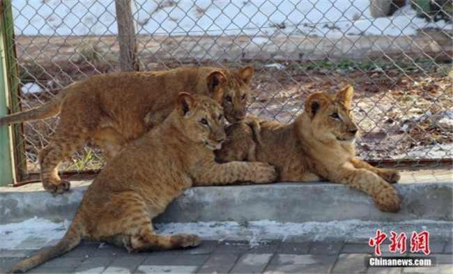 11月13日,西寧,小非洲獅曬太陽。近日,青藏高原野生動物園對外表示,該園繁育成活三只非洲獅。據(jù)了解,三只非洲獅寶分別出生于2018年5月9日和5月15日,均為雌性,其中一對為雙胞胎,目前三只“獅寶”已能自行捕食,體重均達(dá)到20公斤左右。此次是該物種在青藏高原誕生并育活的最好“成績”,就目前觀察情況來看,此物種已適應(yīng)青藏高原氣候。中新社記者 馬銘言 攝