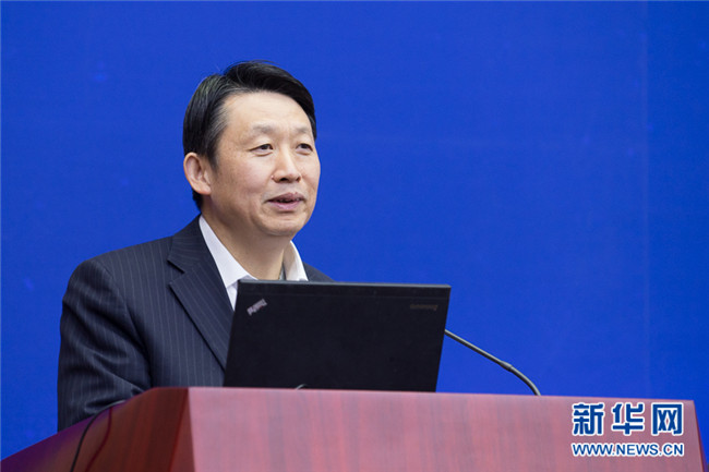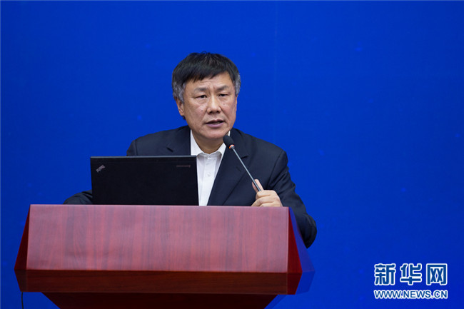 國(guó)務(wù)院發(fā)展研究中心副主任、黨組成員、研究員隆國(guó)強(qiáng)發(fā)表主題演講。新華網(wǎng)記者 李林 攝