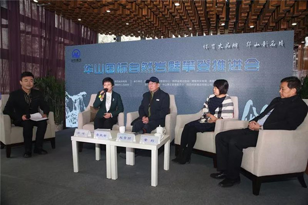 會(huì)上,渭南市政府副秘書長李曉京致歡迎詞,集團(tuán)副總經(jīng)理趙江鋒對(duì)華山及周邊旅游資源進(jìn)行了介紹,攀巖名將、洲際定線員邱洪樹介紹了華山巖壁考察情況,來自英國的攀巖運(yùn)動(dòng)員Eli Hardie Howes向與會(huì)人員分享了華山巖壁攀登的感受。