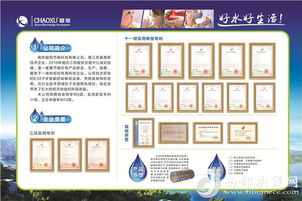 一直以來,工業(yè)行業(yè)飽受冷卻水循環(huán)系統(tǒng)結(jié)垢問題困擾多年,目前市場上使用的阻垢藥劑,酸洗等除垢方式由于不能適應新環(huán)保指標要求,由西北工業(yè)大學劉東博士歷時五年,經(jīng)過不懈努力潛心研究,終于在除垢、防垢領域有了質(zhì)的突破,先后獲得國家級專利13項,其中三項發(fā)明填補國內(nèi)空白。公司所在地南京超旭節(jié)能科技有限公司是南京市“321計劃”引進企業(yè)。公司現(xiàn)已獲得江蘇省民營科技企業(yè)的稱號,取得國軍標GJB9001B-2009體系認證,公司作為ESEP銅基觸媒防垢器在全國的銷售中心。