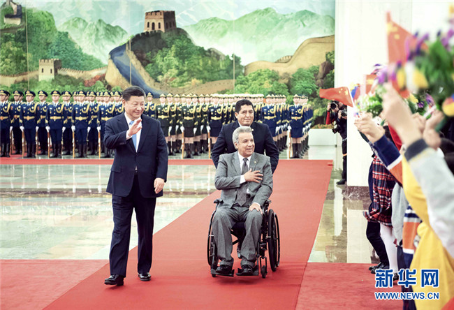 習(xí)近平指出,2016年,我對厄瓜多爾進(jìn)行國事訪問,兩國建立全面戰(zhàn)略伙伴關(guān)系,翻開了中厄關(guān)系發(fā)展新篇章。總統(tǒng)先生上任后致力于深化中厄友好合作,我對此表示贊賞。推動中厄關(guān)系健康穩(wěn)定發(fā)展,符合兩國和兩國人民根本利益,也符合和平、發(fā)展、合作、共贏的時代潮流。