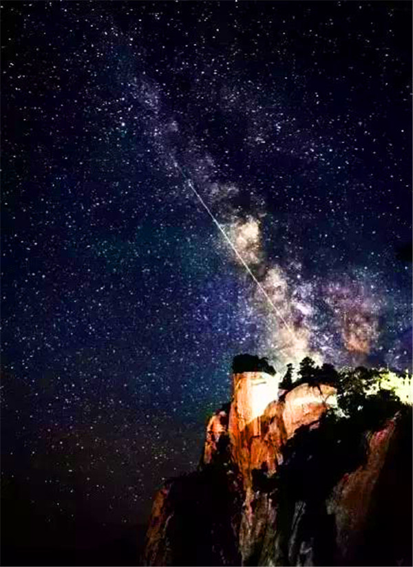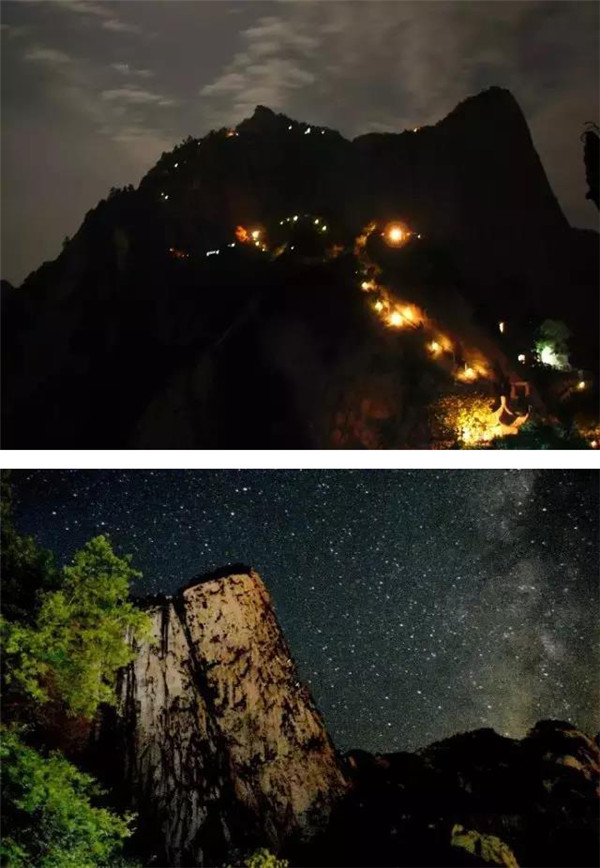 見慣了白天綺麗自然風(fēng)光的華山,其實(shí)華山的夜也是別有一番韻味。