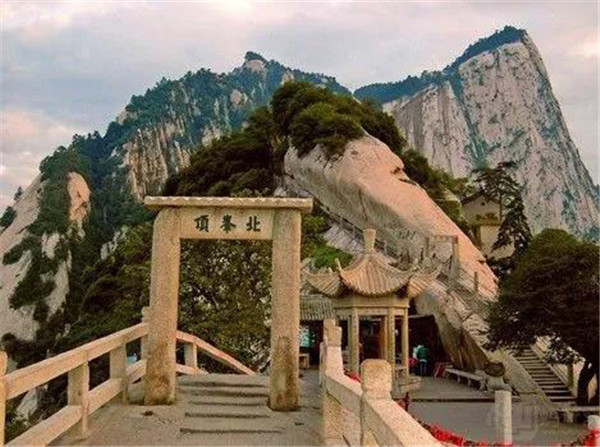 北峰海拔1614米,為華山主峰之一,因位置居北得名。北峰四面懸絕,上冠景云,下通地脈,巍然獨(dú)秀,有若云臺(tái),因此又名云臺(tái)峰。唐李白《西岳云臺(tái)歌送丹丘子》詩(shī)曾寫到:“三峰卻立如欲摧,翠崖丹谷高掌。白帝金精運(yùn)元?dú)?,石作蓮花云作臺(tái)。”