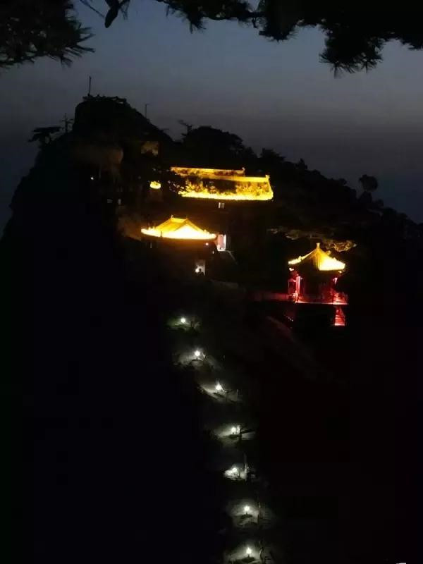 繁眼的星光,滿山的燈光,將華山映襯得一派柔和,這里的夜屏蔽了城市的喧囂與繁華,有著不屬于城市的寧?kù)o與美麗。