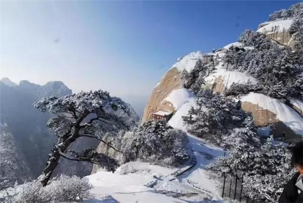 華山由五峰組成,其中東西南三峰呈鼎興相依,是為主峰,中峰和北峰相輔,而且還有七十多座小峰環(huán)衛(wèi)而立,宛如層層花瓣。五峰鼎峙聳立,高插云霄,形如刀削,登臨絕頂,頓覺“只有天在上,更無山與齊”之感。