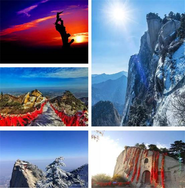 石蓮鋪地,華岳擎天。勢行斧刃,剛插云環(huán)。北臨黃渭,東鎖潼關(guān)。南依秦嶺,西望長安。華山等你來,一道呼吸新鮮空氣,遠(yuǎn)離霧霾。
