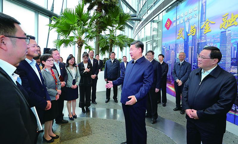 2018年11月6日至7日,中共中央總書記、國家主席、中央軍委主席習(xí)近平在上??疾?。這是6日上午,習(xí)近平在上海中心大廈22層的陸家嘴金融城黨建服務(wù)中心,同正在聯(lián)合開展主題黨日活動(dòng)的企業(yè)黨員親切交談。 新華社記者 謝環(huán)馳/攝