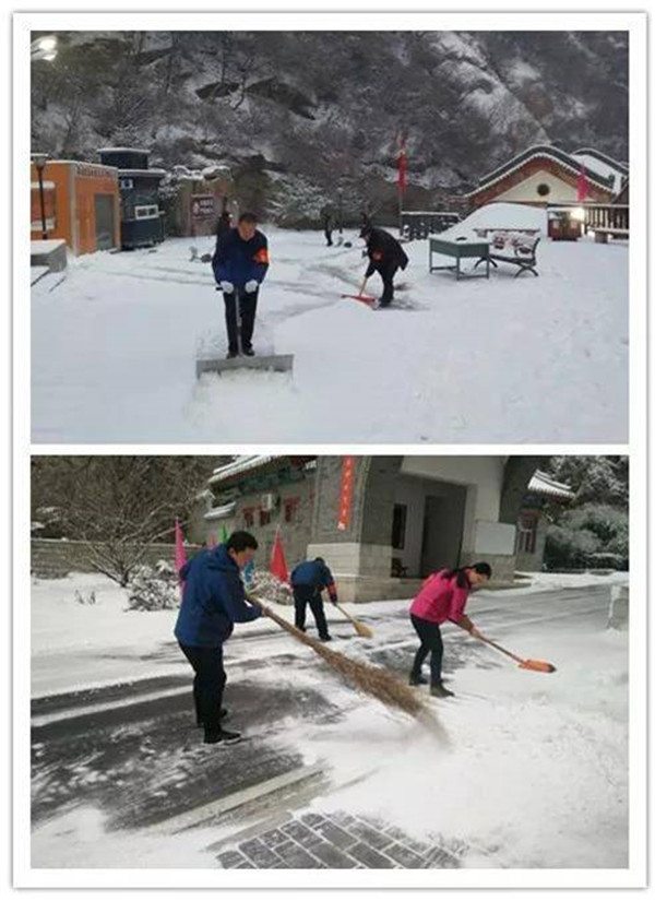 2月9日晚,一場(chǎng)大雪突降華山景區(qū),當(dāng)工作人員與游客一起沉浸在新年的喜悅氛圍時(shí),華山景區(qū)悄然鋪上了一層厚厚的積雪。2月10日早6時(shí),華旅集團(tuán)通過(guò)多渠道號(hào)召全體員工在各自崗位迅速開(kāi)展掃雪除冰工作。雪情就是命令,來(lái)不及欣賞新年首場(chǎng)雪景,廣大員工扛起掃把鐵鍬等掃雪工具,第一時(shí)間奔赴“戰(zhàn)場(chǎng)”,全力確保景區(qū)恢復(fù)運(yùn)營(yíng)。