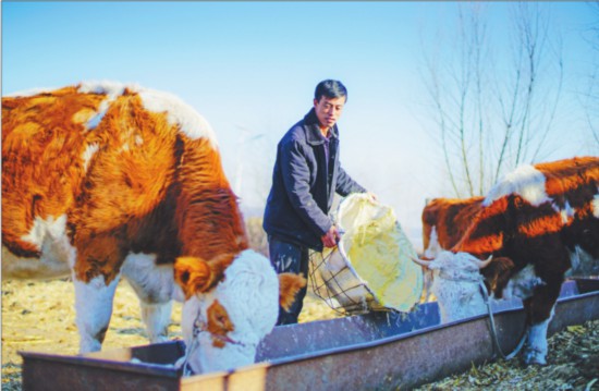 正當路來寶一家深陷貧困泥淖,一籌莫展的時候,立志村村黨支部書記谷秀偉的一番話讓路來寶再次看到了希望。“俗話說‘母牛下母牛,三年五個頭’,都說養(yǎng)牛能掙錢,你要能吃得了那份苦,你就嘗試著養(yǎng)牛吧。沒技術(shù),我找人教你,沒資金我給你作保,幫你賒牛。”在谷秀偉的鼓勵下,路來寶這個養(yǎng)殖門外漢在自家小園搭起了簡易牛舍,賒來的兩頭母牛也成了一家人脫貧的全部希望。