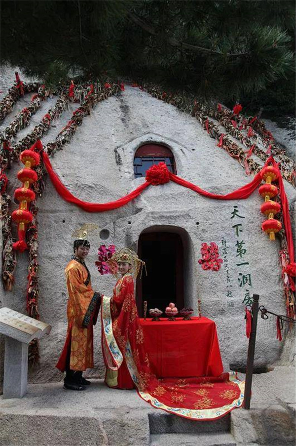 天下第一洞房——相傳秦穆公的女兒弄玉與吹簫人蕭史相愛后,乘龍跨鳳,騰空來至華山,鑿洞成婚并得道成仙,“洞房”一詞也是源于此。