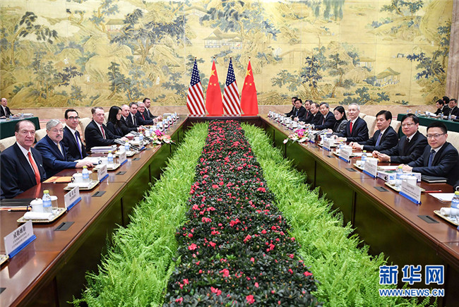 2月14日上午,中共中央政治局委員、國務(wù)院副總理、中美全面經(jīng)濟(jì)對(duì)話中方牽頭人劉鶴與美國貿(mào)易代表萊特希澤、財(cái)政部長姆努欽共同主持中美經(jīng)貿(mào)高級(jí)別磋商開幕式。本輪高級(jí)別磋商定于14-15日在北京舉行。
